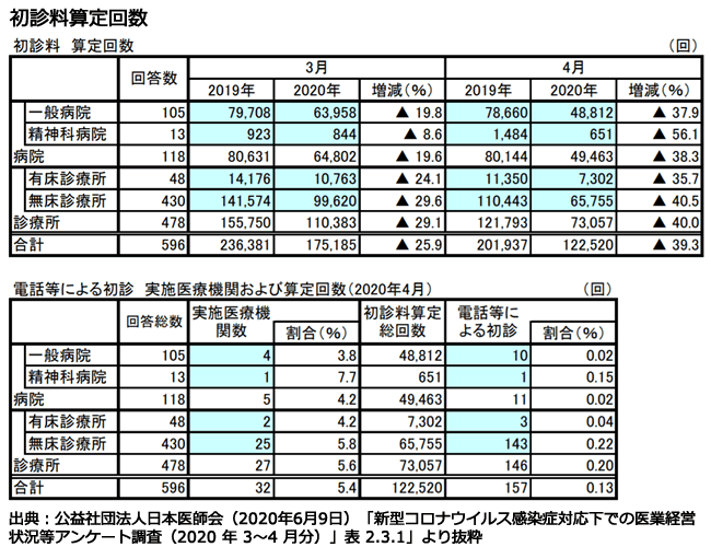 日本医師会調査、4月は小児科・耳鼻科で3割以上ダウン