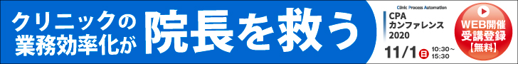 CPAカンファレンス2020は、知識・ノウハウを得られる講演と課題解決のためのサービスを見られる展示との複合イベントで、クリニック業務を効率化し、自院ですぐ実践できる手段や考え方を一挙にご提案。