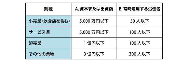 (※1)中小企業事業主とは、以下のAまたはBの要件を満たす中小企業となります。医療機関については「サービス業」に該当。持分なしの医療法人の場合はBのみで判断。