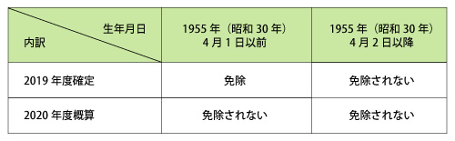 7月の労働保険料申告書作成の際に、生年月日が1955年(昭和30年)4月1日以前の方のみ、確定保険料を免除で計算します。