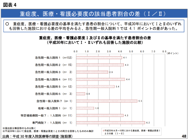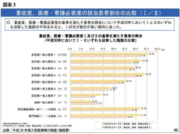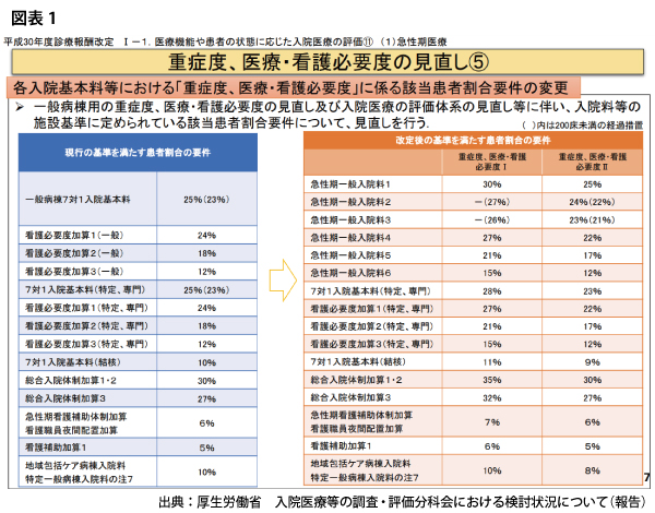 実際に2018年度診療報酬改定でも、看護必要度Iの該当患者割合が引き上げられたが、「それでも低過ぎる」との意見が、中医協委員の中でも支配的になりつつある。(それについては後述)