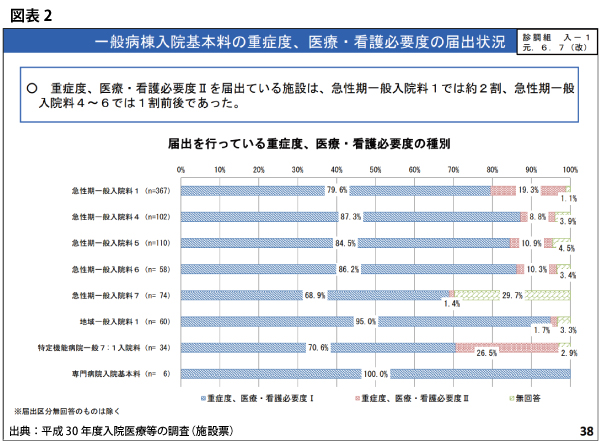 そうしたことを想定しながら、中医協の議論で示された看護必要度IとIIの届出状況を見ていくことにする。