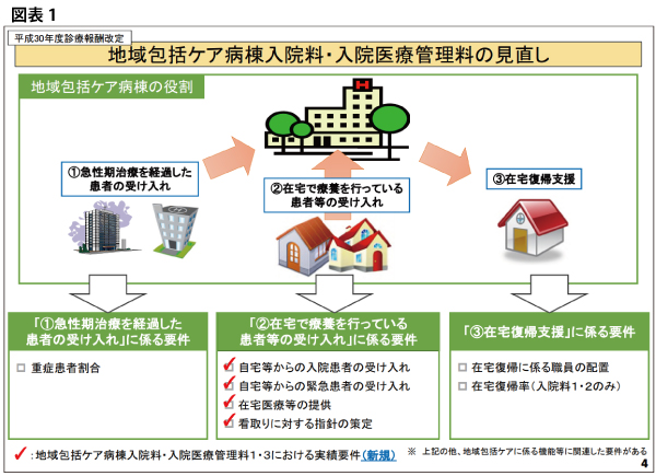 しかし、2018年度診療報酬・介護報酬の同時改定では、「地域包括ケアシステムを支援する病棟」としての位置づけが、より鮮明に打ち出され、ポストアキュートよりもサブアキュート機能および在宅・生活復帰支援重視へと大きく“潮目”が変わった改定となった。