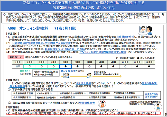 時限的にオンライン診療「初診料」(214点)を新たに設定